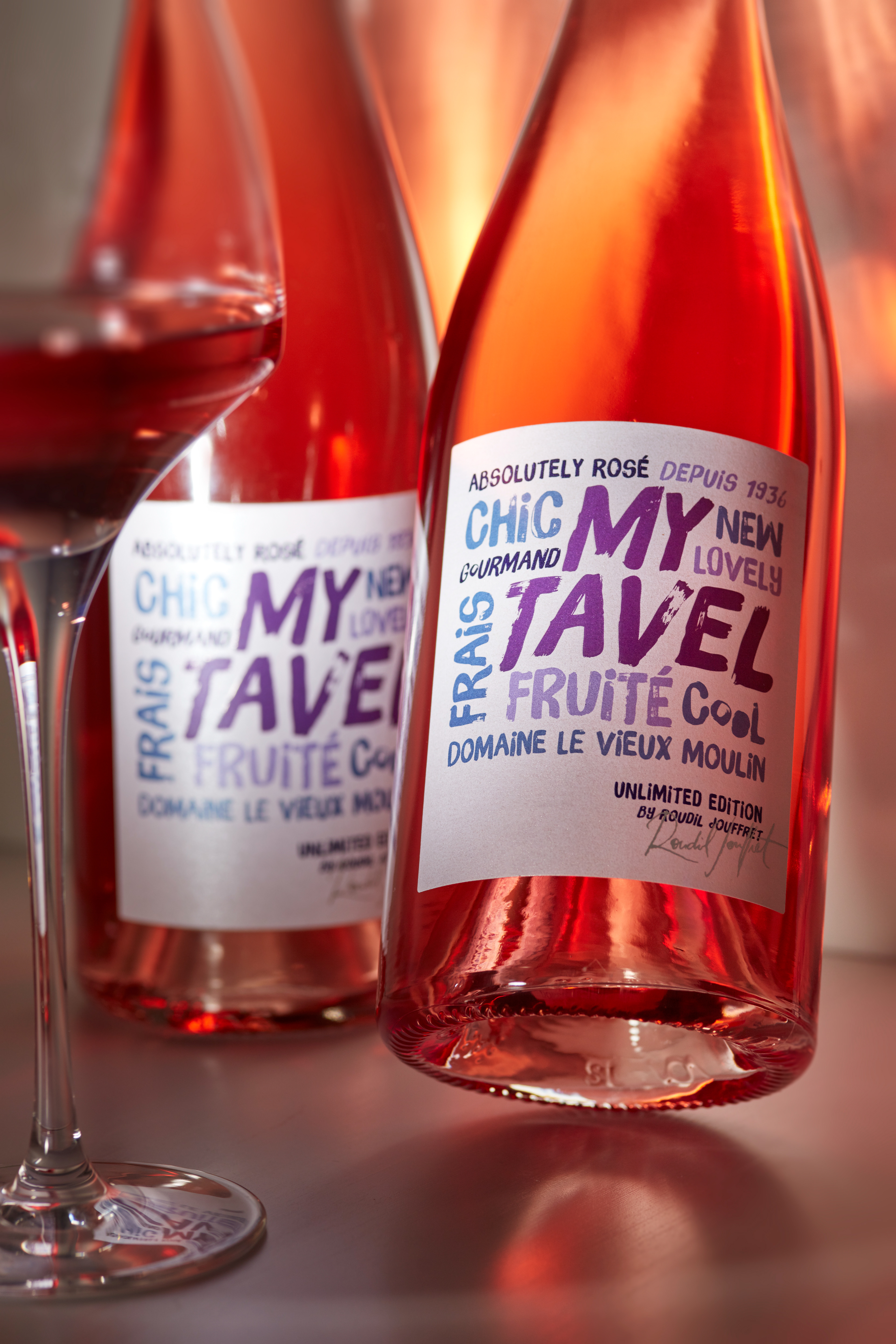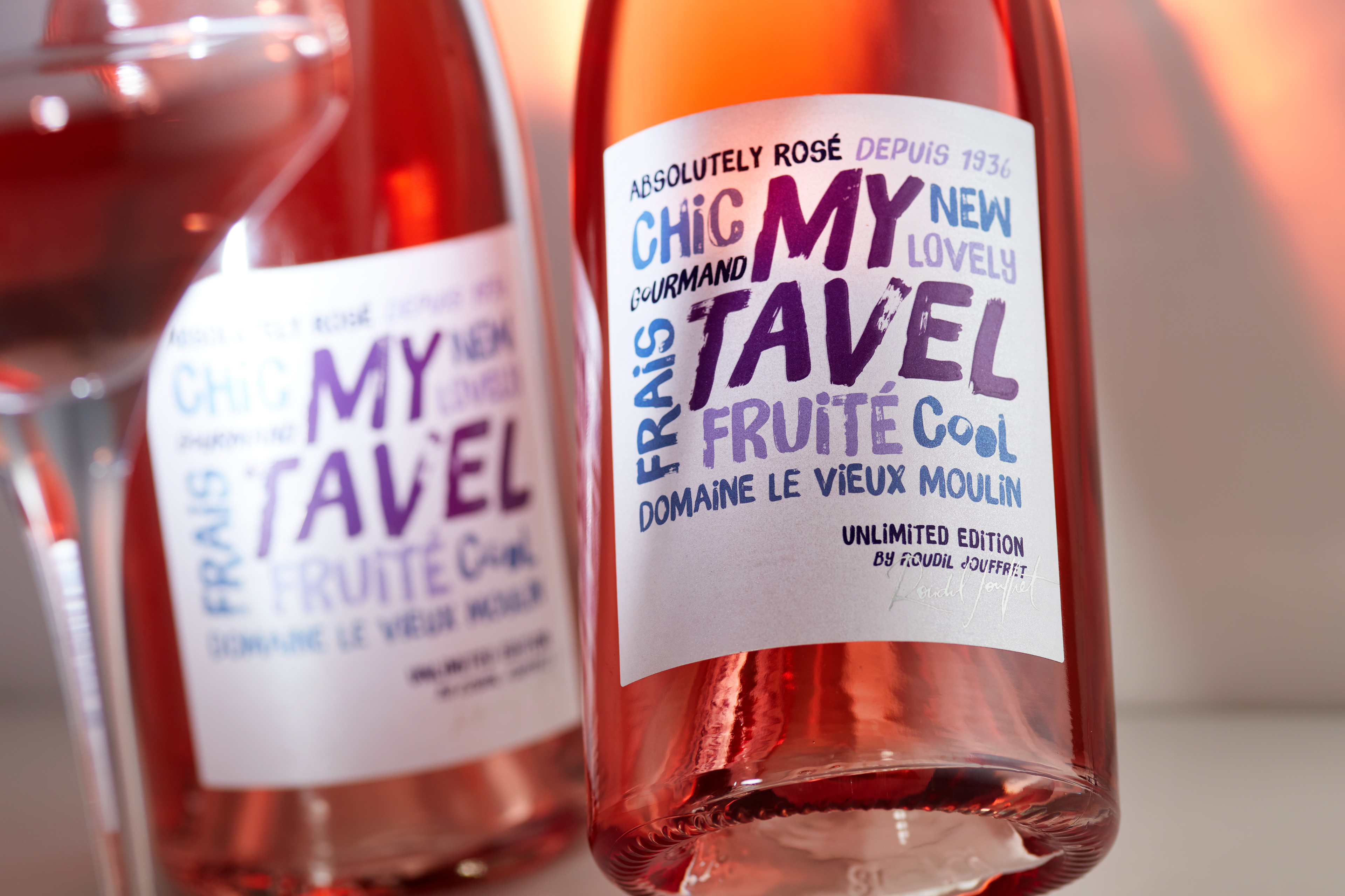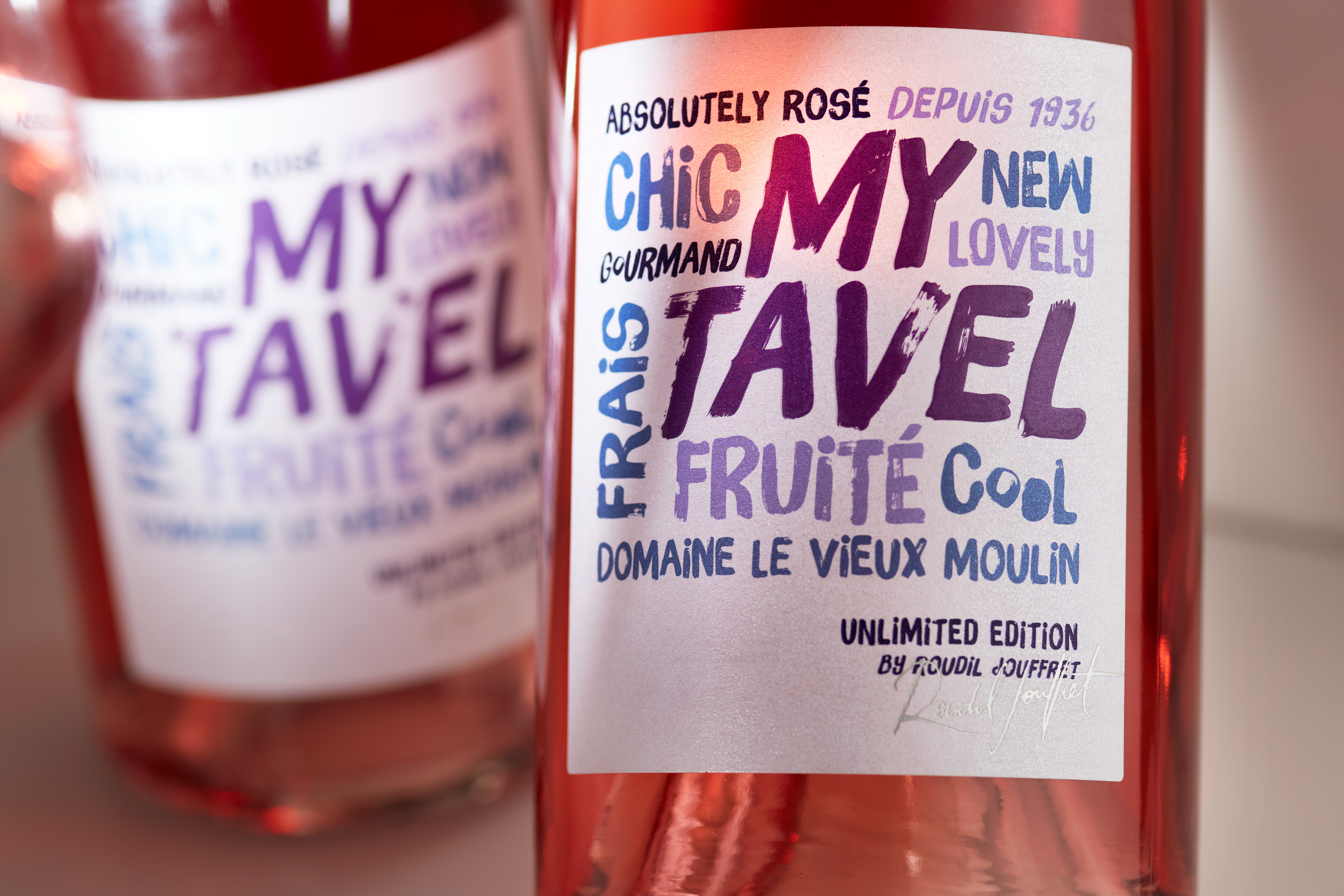 My Tavel wine label, (Tavel is a French Cru of Rosé Wines) for Domaine du Vieux Moulin